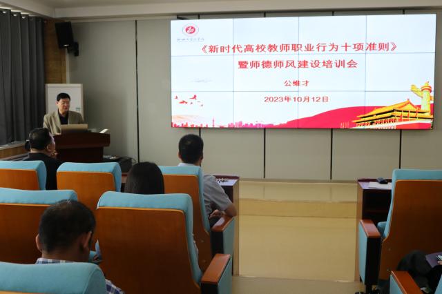 为严格落实新时代高校教师职业行为准则,强化日常教育督导,加大教师权益保护力度,切实抓好教师思想政治和师德师风建设工作,10月12日,永乐高131net(质量学院)党委书记公维才向学院全体教职工讲解了《新时代高校教师十项职业行为准则》(以下简称《准则》),并就师德师风问题进行了强调。