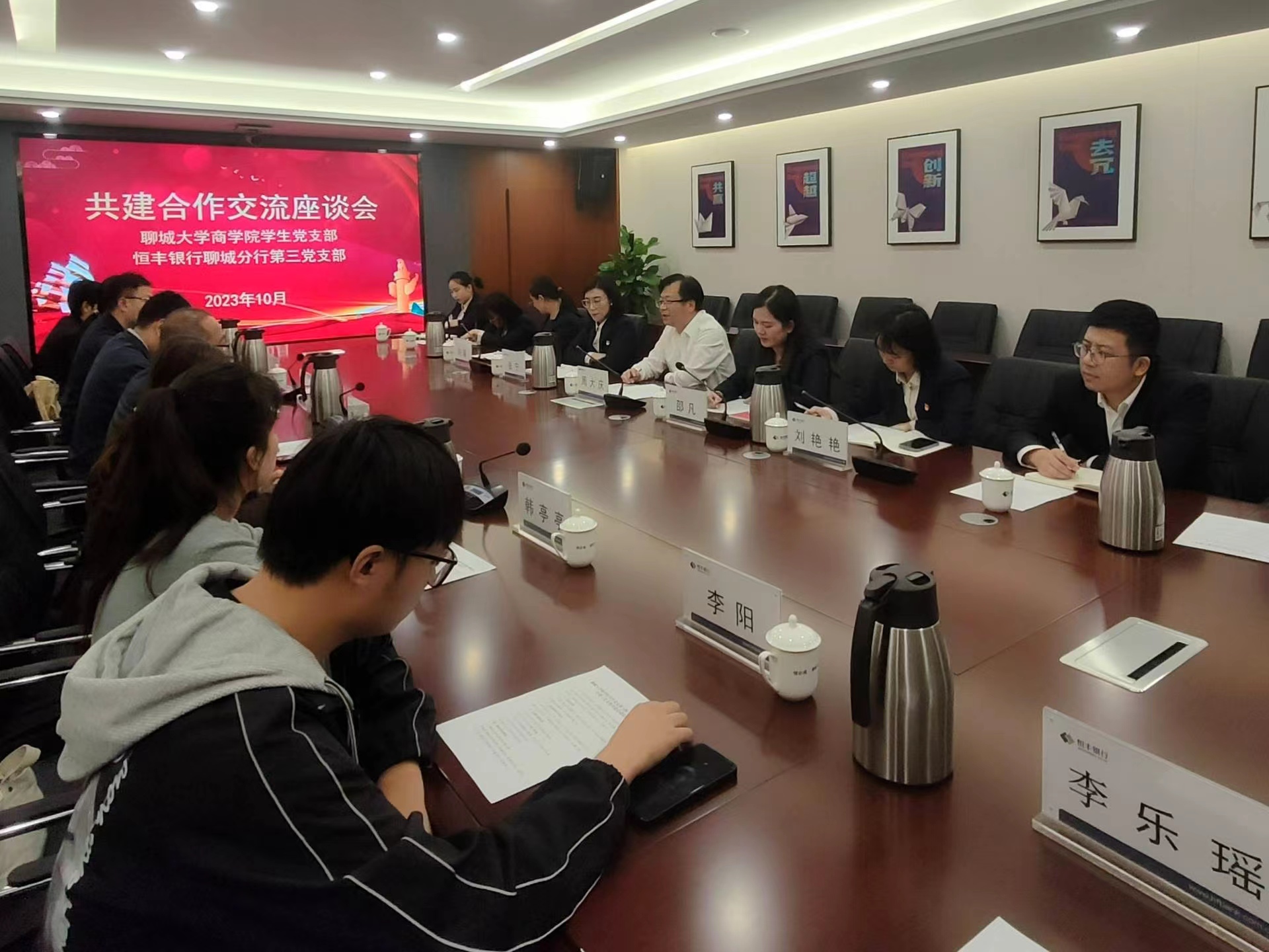 为进一步拓展就业空间,破解学生就业难题,推进毕业生多维度、高质量就业,10月31日,永乐高131net(质量学院)于恒丰银行聊城分行十六楼大会议室开展访企拓岗促就业座谈会。永乐高131net(质量学院)党委副书记李树房,团委书记刘玉华,辅导员焦艳芳、高鹏、韩亭亭、施安琪以及恒丰银行聊城分行副行长周大庆、零售金融部总经理邵凡、零售金融部资深经理刘艳艳出席本次座谈会,学院部分学生参与本次活动。