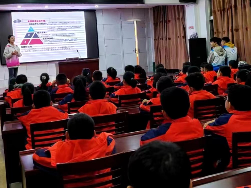 志愿者们以PPT的形式,向小学生们播放爱国视频,使他们在看视频的过程中,增强自身的爱国意识,培养锐意进取、敢于担当的优秀品质。随后,志愿者们发放精心制作的学习资料和时政材料,帮助小学生们在语文作文中灵活地运用所讲实例与事件,更加深入的了解中华民族的伟大历史和奋斗历程,以扩展知识面,丰富知识储备。志愿者们还进行了红色故事、英雄事迹的分享,采用举一反三的思维方式,与小学生们在互动中进行学习拓展,帮助他们开拓思路,学习革命先烈的优秀品质,增强道德修养,筑牢爱国根基。