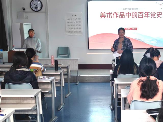 10月26日,学院邀请美术与设计学院副教授王东兵以《美术作品中的百年党史》为题,按时间顺序深入讲解了多幅重要油画,着重介绍了油画《开国大典》,分析其构图特点与色彩运用,讲述其背后的重大历史意义。通过对油画构图、色彩等方面的解读,让同学们深刻感受党一路走来的艰辛与不易。