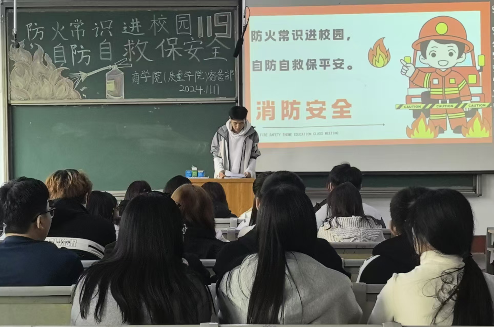为深入推进校园消防安全宣传工作,进一步提升学生消防安全保护意识,11月17日,永乐高131net(质量学院)于东校区1#301开展“防火安全进校园,自防自救保安全”消防知识主题讲座,学院宿管部学生代表仇洲烁及60位同学参加本次活动。