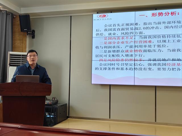 梁树广带领全体教职工集体学习中央经济工作会议精神,认为中央经济工作会议是在以进一步全面深化改革推进中国式现代化关键时刻召开的一次十分重要的会议。习近平总书记的重要讲话全面总结2024年经济工作,科学分析当前经济形势,对做好2025年经济工作进行了系统部署,为做好明年和今后一个时期经济工作指明了前进方向、提供了根本遵循。梁树广结合当前的经济形势,指出国内经济运行在需求、供给、就业、风险四方面仍面临“不少”困难挑战,但是我们要坚持“五个统筹好”的工作原则,正视困难、坚定信心,努力把各方面积极因素转化为发展实绩。会议从经济增长、就业与物价、国际收支与居民收入四个维度明确了2025年经济工作的目标,进而提出“更加积极有为”的宏观政策,财政政策基调由“积极”升级为“更加积极”,货币政策基调由“稳健”升级为“适度宽松”。接着,梁树广就“九大任务”重点工作进行了详细阐释,并分享了任泽平年度演讲“2025中国经济十大预测”。最后,呼吁老师们结合经济问题、国家政策和个人研究基础,做好科研选题。