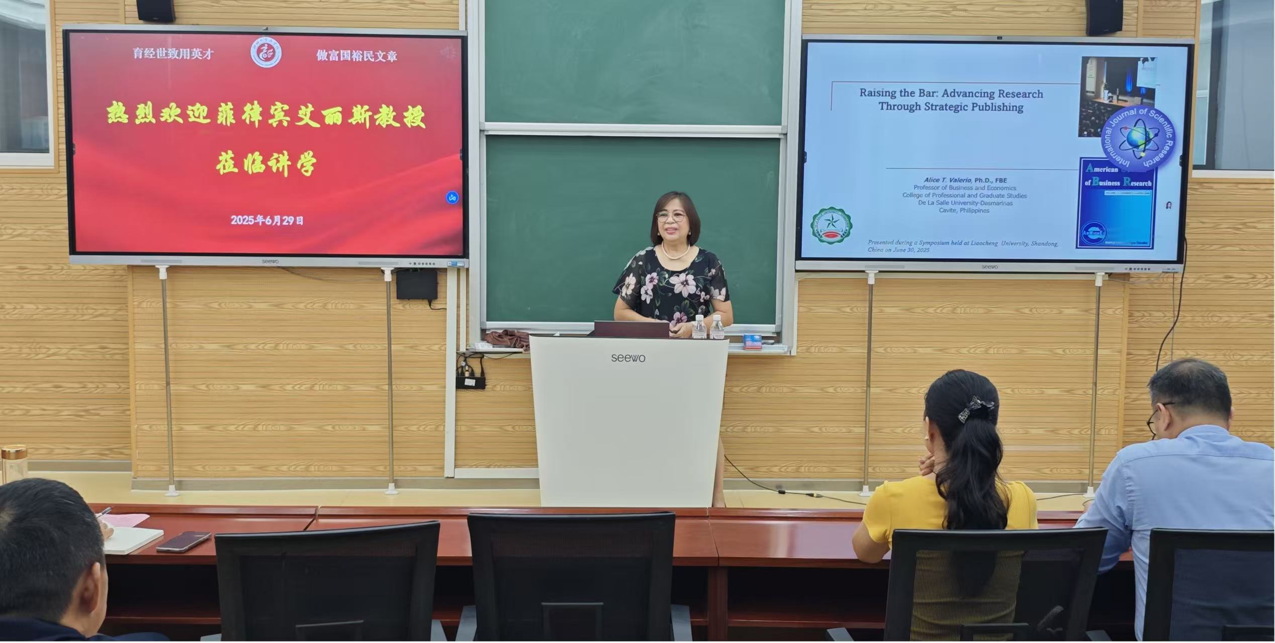 为提升学院师生学术水平,菲律宾德拉萨大学艾丽斯教授应邀于6月29日在学院710教室作了题为“Raise the Bar Advancing Research through Strategic Publishing”的学术报告。报告会由学院党委书记公维才教授主持,学院40余名师生参加。