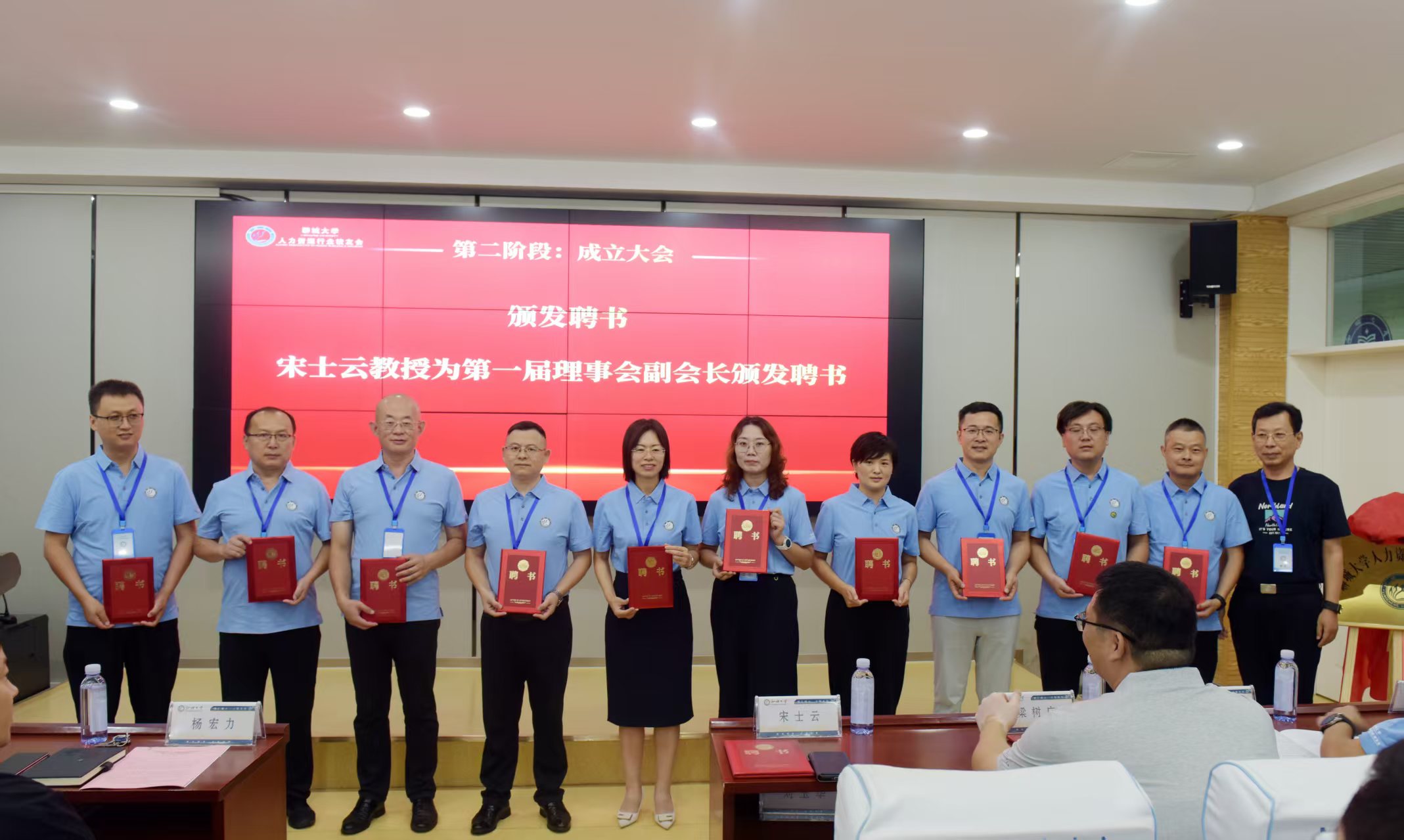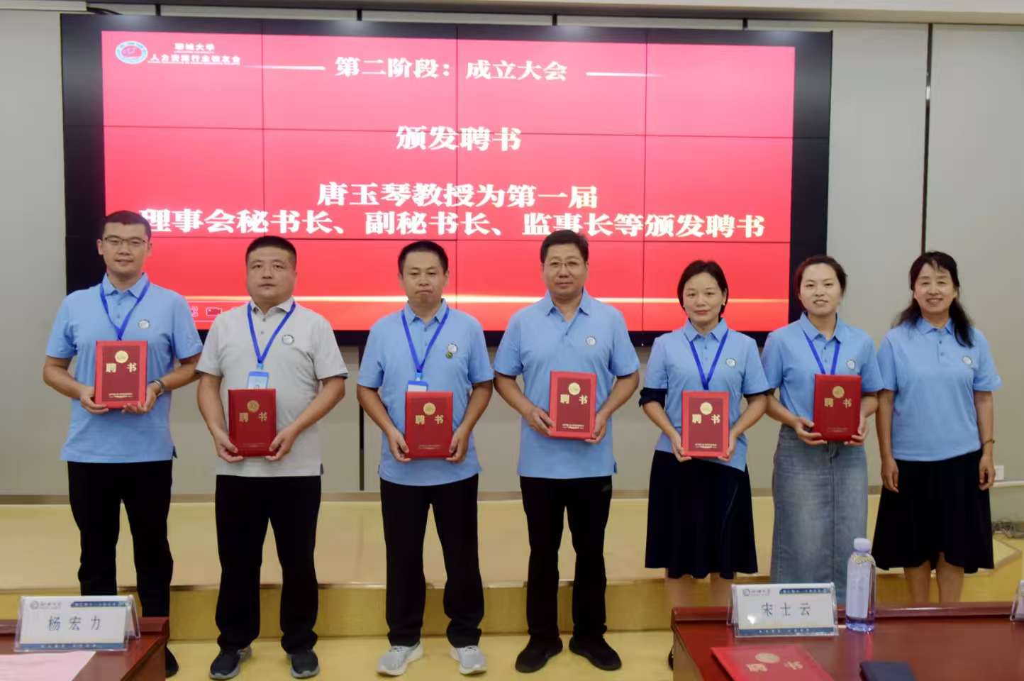 党委办公室(学校办公室)主任冯泽静为行业校友会第一届理事会顾问和会长颁发聘书;宋士云教授为行业校友会第一届理事会副会长颁发聘书;唐玉琴教授为行业校友会第一届理事会秘书长、副秘书长、监事长等颁发聘书。