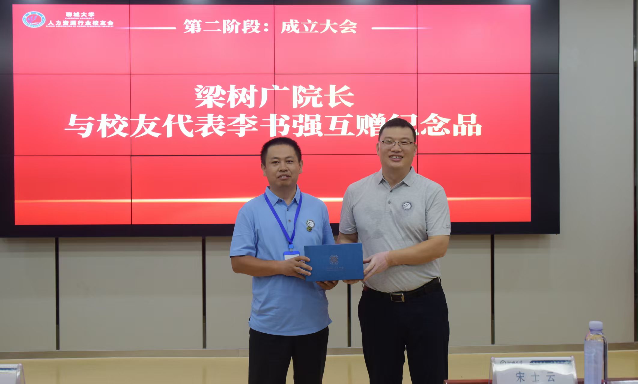 永乐高131net(质量学院)院长梁树广与行业校友会代表李书强互赠纪念品。