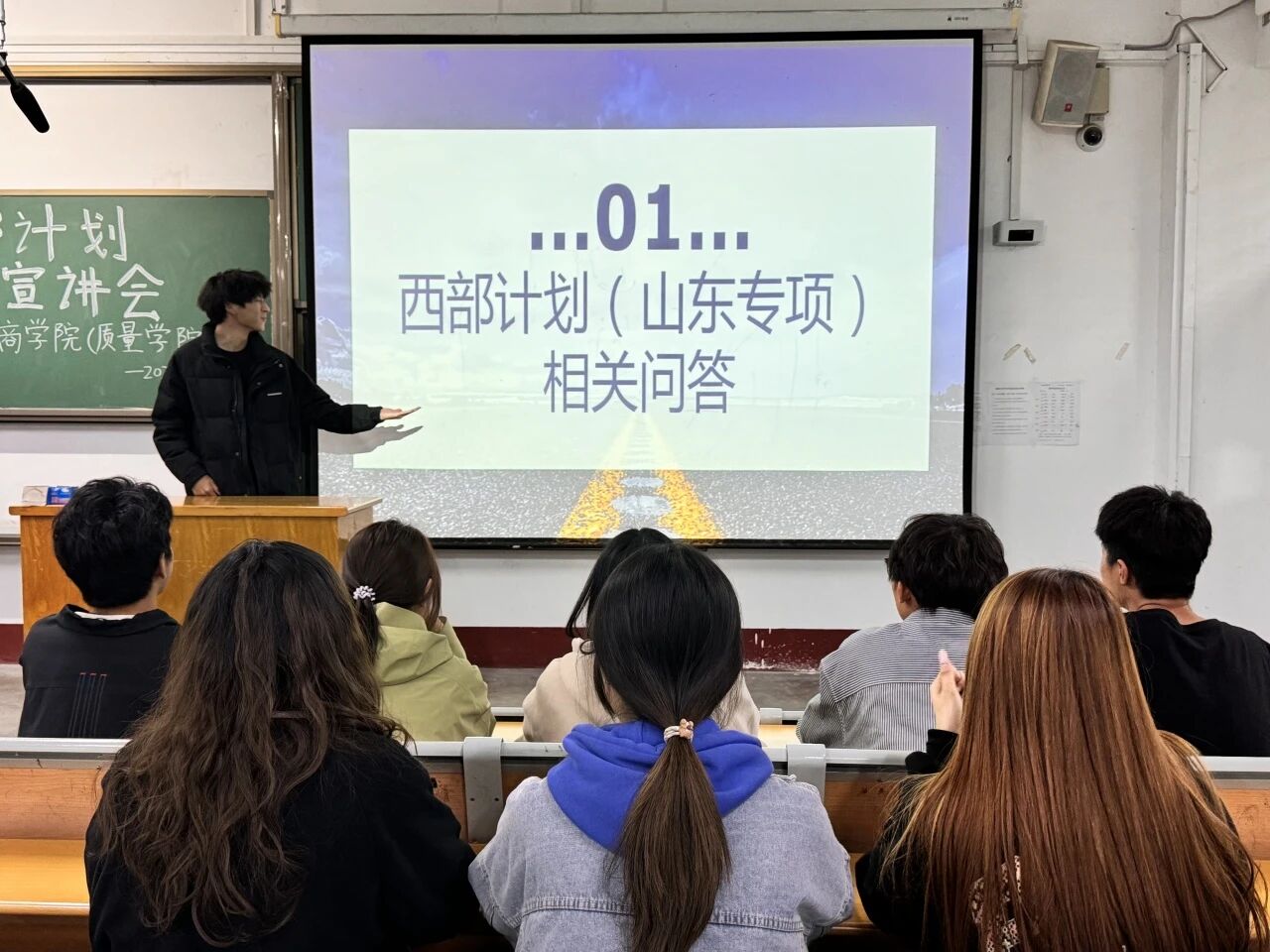 为积极引导学院学子奔赴西部、服务基层,3月13日,永乐高131net(质量学院)于405室开展西部计划动员大会,志愿服务部工作人员侯旭涵、孙意祥担任主讲人。